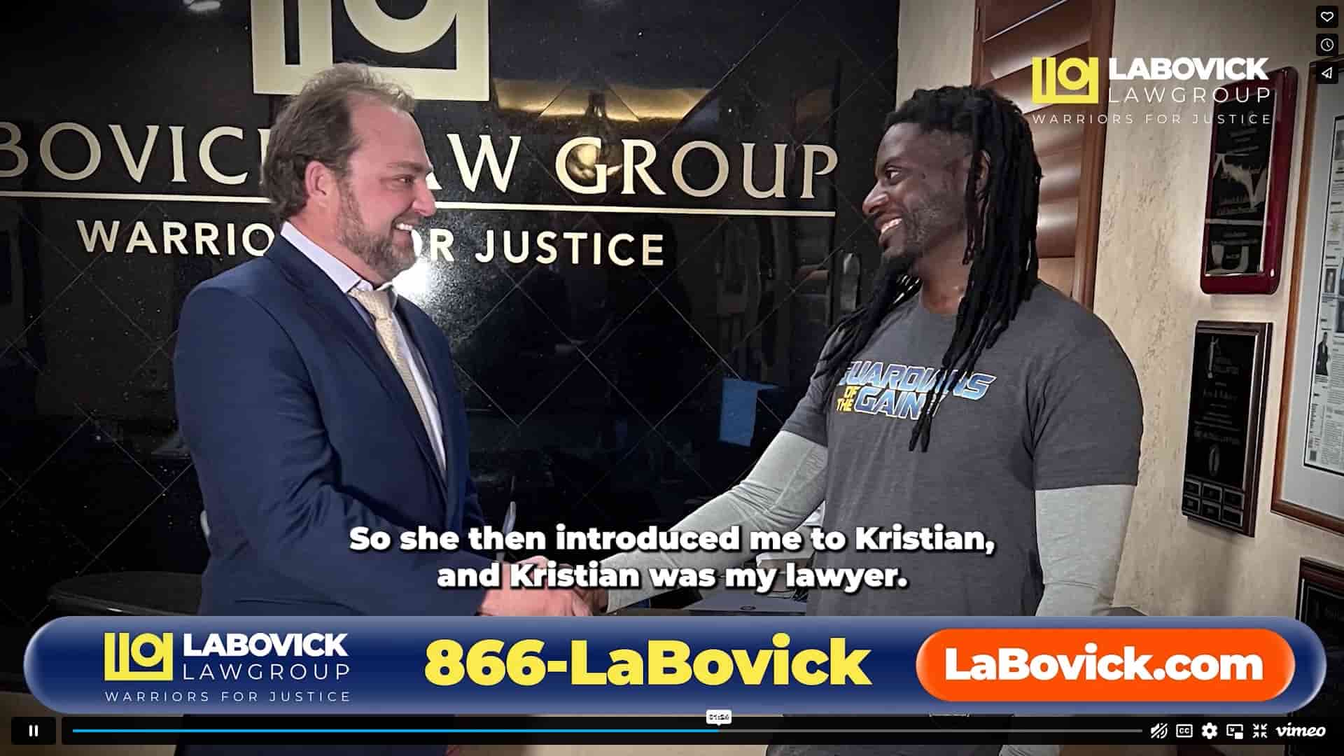 Bueno, soy un nuevo cliente de LaBovick Law Group y se han tomado su tiempo y me han escuchado sin interrupción. También fueron sensibles a mi caso que les expuse. Bueno, acaban de empezar mi caso, así que espero que todo vaya bien».